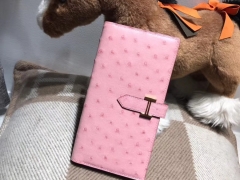 Hermès(爱马仕)bearn两折钱夹鸵鸟皮1Q Rose Confetti奶昔粉色 金扣