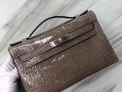 Hermès(爱马仕)Mini Kelly 亮面框框美洲鳄 ck81斑鸠灰 顶级工艺 蜡线全手工 银扣 22cm