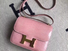 Hermès(爱马仕)Constance 空姐包 亮面方块 美洲鳄鱼 1Q奶昔粉 Rose Confetti 完美品相 金扣 19cm 现货