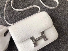 Hermès(爱马仕)Constance 空姐包 雾面美洲鳄 01纯白 配蜥蜴扣 蜡线全手工 接受预定 19cm