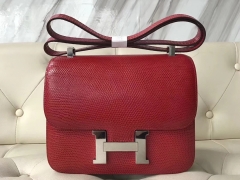 Hermès(爱马仕)Constance24cm lizard 进口亮面蜥蜴皮 Q5 国旗红 Rouge casaque 银扣