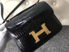 Hermès(爱马仕)Constance 18cm Alligator shiny 亮面鳄鱼 ck89 黑色 Noir 金扣