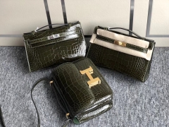 Hermès(爱马仕)Constance18cm Mini kelly 22cm Alligator shiny 亮面鳄鱼 6H 橄榄绿 金扣 银扣