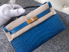 Hermès(爱马仕)Mini kelly pochette 22cm 亮面鳄鱼 7Q爱琴海蓝 金扣 手拿包 晚宴包 顶级手缝