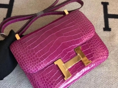 Hermès(爱马仕)Constance24cm Alligator shiny 亮面鳄鱼 J5 天方夜谭粉紫 金扣