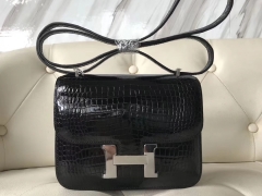 Hermès(爱马仕)Constance Porosus shiny 亮面澳洲湾鳄 ck89 黑色 noir 银扣 18cm