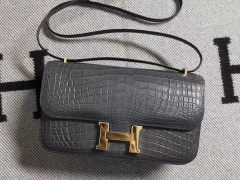 Hermès(爱马仕)雾面鳄鱼两点 小康26cm 铁灰色
