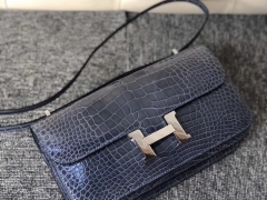 Hermès(爱马仕)Constance 26cm Alligator shiny 亮面鳄鱼 N7 风暴蓝 银扣 顶级手缝 定制