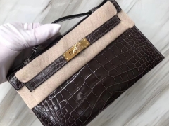 Hermès(爱马仕) Minikelly pochette Alligator shiny 亮面鳄鱼 CK88 石墨灰 金扣 手拿包 晚宴包 22cm
