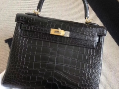 Hermès(爱马仕)Kelly Alligator matt 雾面鳄鱼 ck89 黑色 noir 金扣 顶级手缝 25cm 现货
