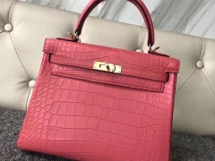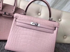 Hermès(爱马仕)Kelly 凯莉包 Alligator matt 雾面鳄鱼 芭比粉 银扣 浅浅的粉 小可爱 25cm现货