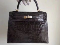 Hermès(爱马仕)Kelly 凯莉包 Alligator shiny 亮面鳄鱼 ck88 石墨灰 金扣 顶级手缝 25cm 现货