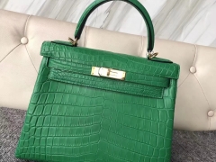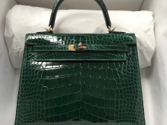 Hermès(爱马仕)Kelly 25cm Alligator shiny 亮面鳄鱼 ck67 祖母绿 金扣 顶级手缝 现货
