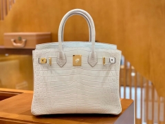 Hermès(爱马仕)Birkin 铂金包 羊毛白 一级皮 尼罗鳄鱼皮 臻品级别 金扣 30cm