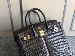 Hermès(爱马仕)Birkin 25cm Crocodile shiny 亮面鳄鱼 ck89 黑色 Noir 银扣 拱珠皮 顶级手缝 现货