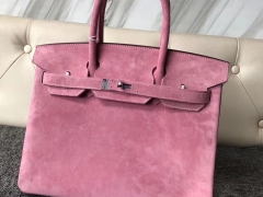 Hermès(爱马仕)Birkin 铂金包 麂皮 粉色 银扣 30cm 顶级手缝 定制