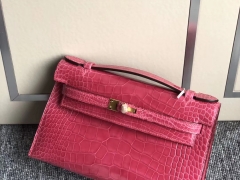 Hermès(爱马仕)Mini kelly pochette 22cm 亮面鳄鱼 E5 桃红 桃粉 金扣 手拿包 晚宴包 现货