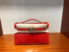 Hermès(爱马仕)Mini kelly Pochette 22cm Alligator shiny S3 心红色 金扣 顶级手缝 定制