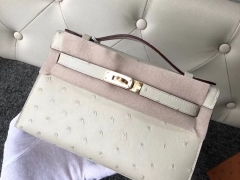Hermès(爱马仕)Mini kelly pochtte 22cm Ostrich kk 鸵鸟 3C 羊毛白 金扣 顶级手缝 现货