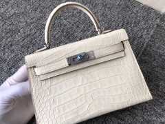 Hermès(爱马仕)Mini kelly ll Alligator matt 雾面鳄鱼 8L 奶油白 银扣 顶级手缝