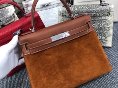 Hermès(爱马仕)Kelly 28cm 麂皮 金棕色拼马鞍皮棕色 银扣 顶级手缝