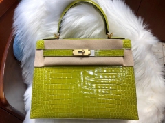 Hermès(爱马仕)Kelly 28cm Porosus shiny 亮面澳洲湾鳄 6R 奇异果绿 金扣 顶级手缝 品相超美 现货