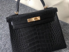 Hermès(爱马仕)Kelly 28cm Alligator matt 雾面鳄鱼 ck89 黑色 Noir 金扣 顶级手缝