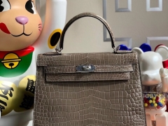 Hermès(爱马仕)Kelly 28cm Porosus shiny 亮面澳洲湾鳄 ck81 斑鸠灰 银扣 顶级手缝 现货