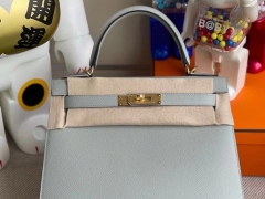 Hermès(爱马仕)Kelly 28cm Epsom 原厂掌纹皮 8U 冰川蓝 金扣 顶级手缝