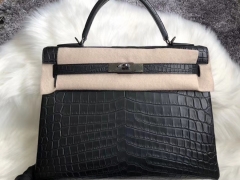 Hermès(爱马仕)Kelly 32cm Crocodile matt 雾面鳄鱼 ck89 黑色 Noir 黑扣 品相完美
