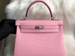 Hermès(爱马仕)Kelly 28cm Alligator matt 雾面鳄鱼 5p 樱花粉 银扣 顶级手缝 现货