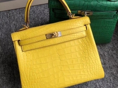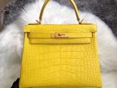 Hermès(爱马仕)Kelly 25cm Alligator matt 雾面鳄鱼 m9 金盏花黄 金扣 顶级手缝 现货