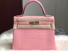 Hermès(爱马仕)Kelly 25cm Alligator matt 雾面鳄鱼 5p 樱花粉 银扣 顶级手缝 超美