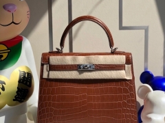 Hermès(爱马仕)Kelly 25cm Crocodile matt 雾面鳄鱼 4D 大地棕 银扣 顶级手缝 品相完美