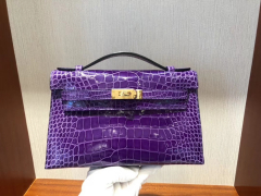 Hermès(爱马仕)Mini kelly pochette Alligator shiny 亮面鳄鱼 5L 极度紫 金扣 手拿包 晚宴包 22cm 现货