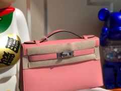Hermès(爱马仕)Mini kelly swift 1Q奶昔粉 rose confetti 银扣 顶级手缝 手拿包 晚宴包