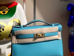 Hermès(爱马仕)Mini kelly swift 北方蓝 金扣 顶级手缝 手拿包 晚宴包