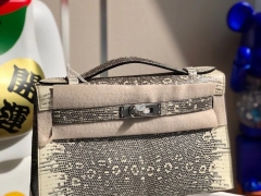 Hermès(爱马仕)Mini kelly pochette 22cm Lizard 进口亮面蜥蜴 01原色 小喜马拉雅色 银扣