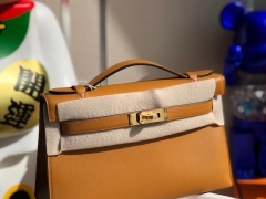 Hermès(爱马仕)Mini kelly swift 2S 芝麻黄 Sesame 金扣 顶级手缝 手拿包 晚宴包