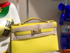 Hermès(爱马仕)Mini kelly swift 9R柠檬黄 金扣 顶级手缝 手拿包 晚宴包