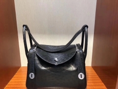 Hermès(爱马仕)Lindy琳迪包 Ostrich kk鸵鸟 ck89 黑色 noir 银扣 30cm