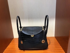 Hermès(爱马仕)Lindy 琳迪包 雾面鳄鱼 ck89 黑色 Noir 金扣 26cm 顶级手缝