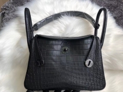Hermès(爱马仕)Lindy 26cm Crocodile matt 雾面鳄鱼 黑色黑扣 So black