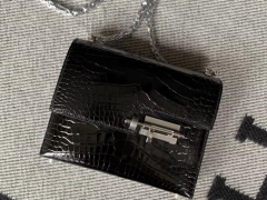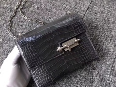 Hermès(爱马仕)Verrou插销包 Alligator shiny 美洲亮面鳄鱼 黑色 银扣 17cm