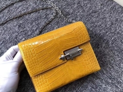 Hermès(爱马仕)Verrou插销包 Alligator shiny 亮面鳄鱼9D 琥珀黄 Ambre 17cm