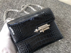 Hermès(爱马仕)Verrou 17cm Alligator shiny 亮面鳄鱼 1p鸭子蓝 顶级手缝 定制