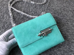 Hermès(爱马仕)Verrou17cm 麂皮 7v 湖水绿 银扣 定制