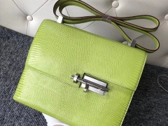 Hermès(爱马仕)Verrou 24cm Lizard 进口亮面蜥蜴 6R 奇异果绿 银扣 顶级手缝