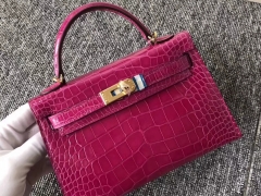 品牌:Hermès(爱马仕);类别:Mini Kelly迷你凯莉包;颜色:樱花粉;材质:雾面框框美洲鳄;等级:顶级;附件:全套包装礼盒;尺寸:19cm;功能:手提单肩包