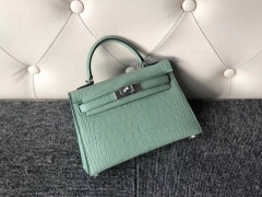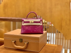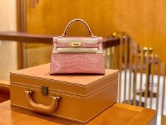 未经允许不得转载:铂金女王 » Hermès(爱马仕)Mini Kelly 迷你凯莉 雾面框框美洲鳄 Y1香草色 顶级工艺 蜡线全手工 银扣 19cm 2代